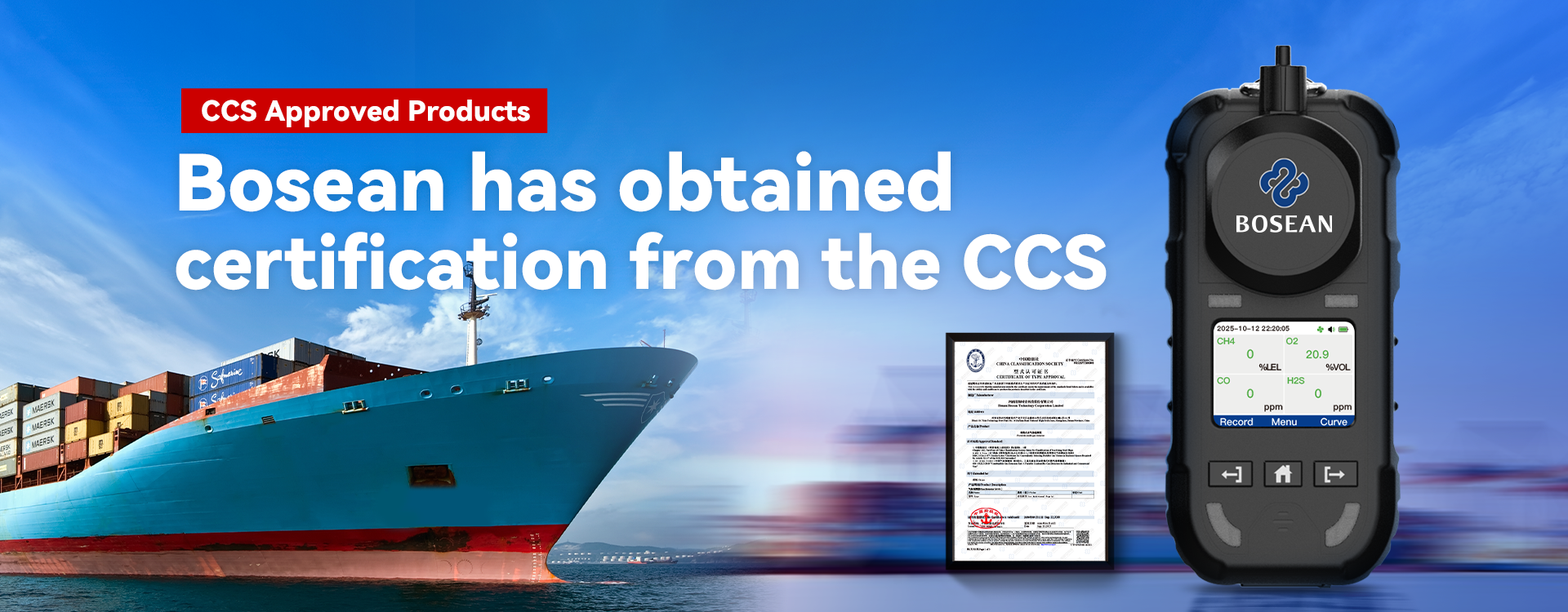 Warmest congratulations to Henan Bosean Technology Co., Ltd. on the successful issuance of the type approval certificate (Certificate No. WH25PTB00095) for its BH-4M portable multi-gas detector by the China Classification Society (CCS). As an authoritative professional ship inspection organization, the China Classification Society (CCS) is renowned for its stringent and internationally recognized certifications, serving as a “passport” for ship equipment to enter the global market. This certification not only verifies that our product fully complies with international ship safety regulations in terms of key technology research and development, precision manufacturing, and quality system control, but also signifies that Baoshian Technology has achieved authoritative recognition in the field of ship gas detection. The BH-4M multi-gas detector can simultaneously detect 1 to 4 gases, employs a pump-suction sampling method, is equipped with a full-color display screen, and features four alarm functions: sound, light, vibration, and display. It supports continuous use for over 10 hours. This equipment is suitable for the shipping industry, providing accurate and reliable technical support for gas safety monitoring. In the future, Bosean Technology will continue to deepen its technological innovation, focus on the gas detection needs of ships and marine engineering, provide global customers with safer and more...