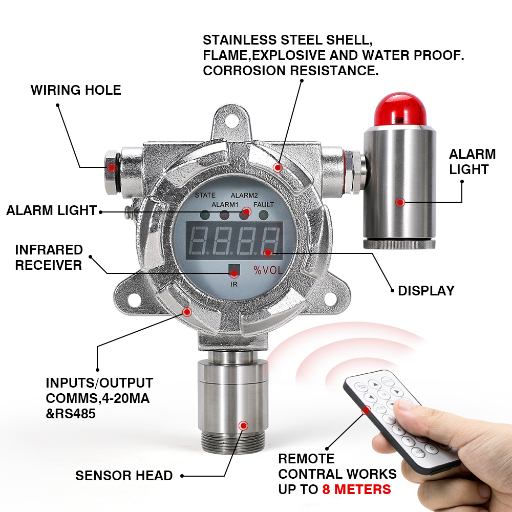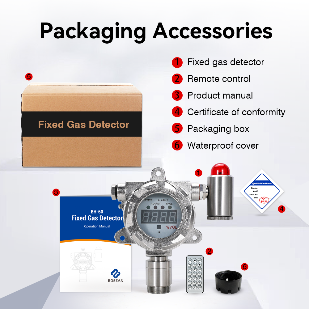 BH-60 fixed gas detector (stainless steel) is a new type of gas detector developed and produced in combination with the company's many years of experience in gas detection.It is used to detect the concentration of flammable gases or other toxic and harmful gases in the air.When the concentration reaches or exceeds the preset alarm value. The controller will give an audible and visual alarm, promptly remind people take safety measures to prevent the occurrence of explosions and poisoning incidents, thus ensuring the safety of life and property.We provide gas detector OEM/ODM service.